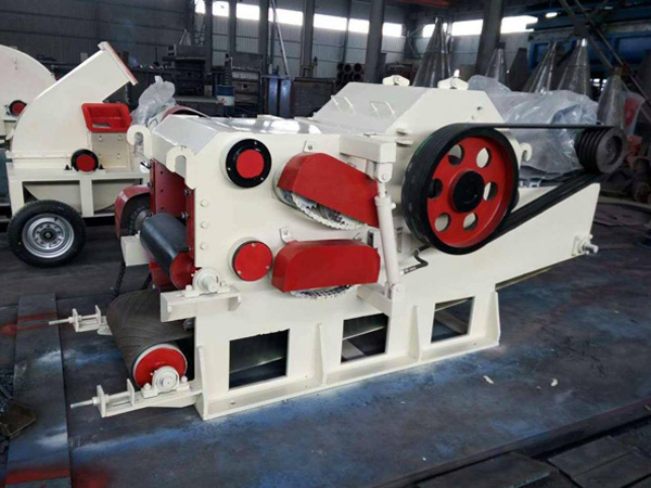 木料由進料口送入,當木料按接觸到削切刀片時,跟著削切刀盤的高速旋轉進行削切,其切削機構是一個旋轉的鼓輪,上面安裝若干把飛刀,飛刀旋轉時將木材加工成木片。鼓輪外緣上有多個方形通孔,切削下來的合格片料通過網篩孔落下,有底部排出,大的料片將在機內再次切削。